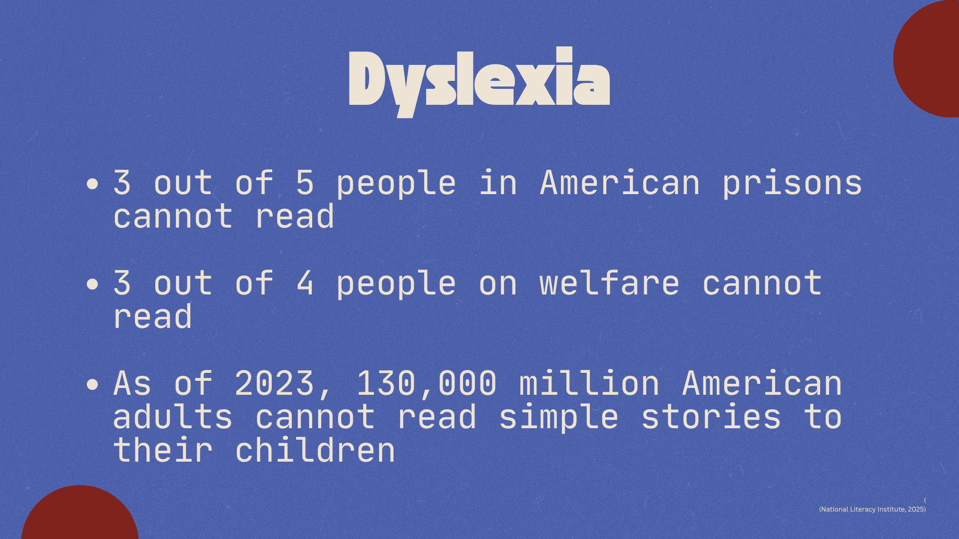 I then pointed out that Dyslexia is characterized as a neurobiological disorder, meaning that there is often a family history and genetic link. It is highly likely that within certain communities, multiple generations of a family have lived with undetected Dyslexia and/or other learning disabilities.