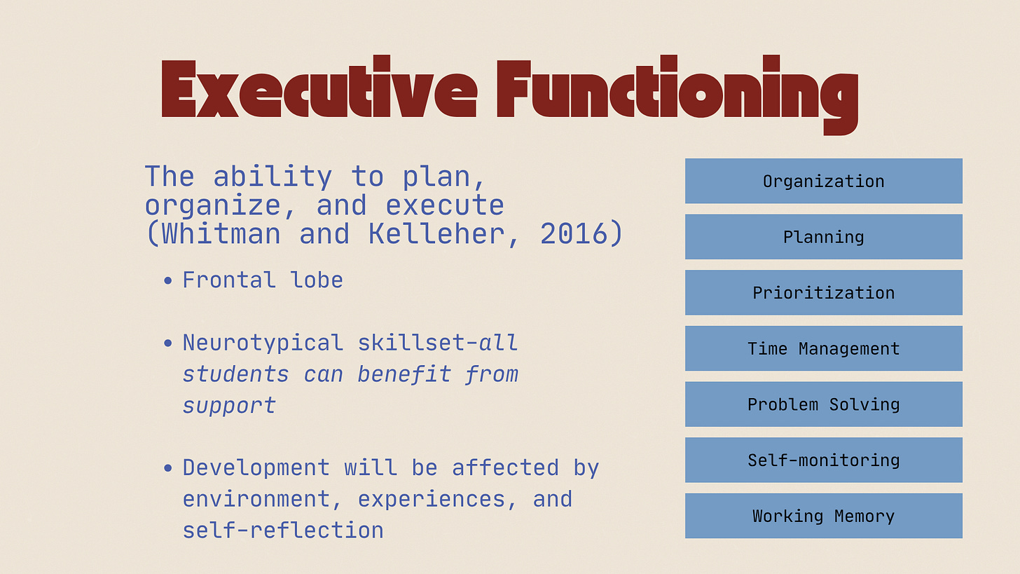 From there, I defined executive functioning and we talked about how basic language concepts are embedded within these daily-used skills.